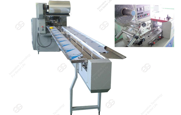 Машина использована для упаковки туалетной бумаги, хлеба, шоколада, туалетной бумаги, желток пирог, леденцы, торт Луны, мороженое, карты, влажные полотенца, ложки, зубные щетки, мыло, тапочки, чистый мяч, шприцы, комплектующие и ежедневные необходимости, и т.д. Особенности: